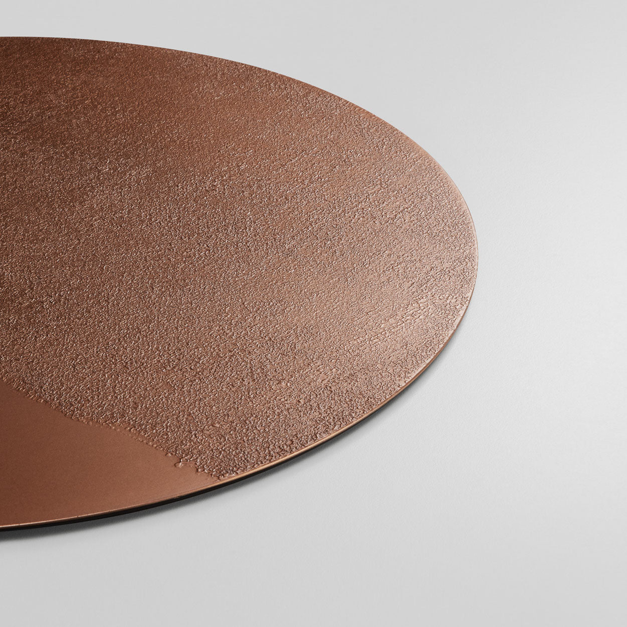 Tra ordito e trama si intreccia una tensione armoniosa, dove la materia rivela la sua struttura più profonda. Realizzato a mano su un supporto in fibra di legno, questo sottopiatto tondo è il risultato di una lavorazione che unisce vernice e tessuto, dando origine a superfici dense di ritmo e significato. Le texture stratificate riflettono un dialogo continuo tra pieni e vuoti, ordine e libertà, trasformando la superficie in un paesaggio visivo e tattile. Armature esprime un’eleganza silenziosa, fatta di equilibrio, ricerca e autenticità.