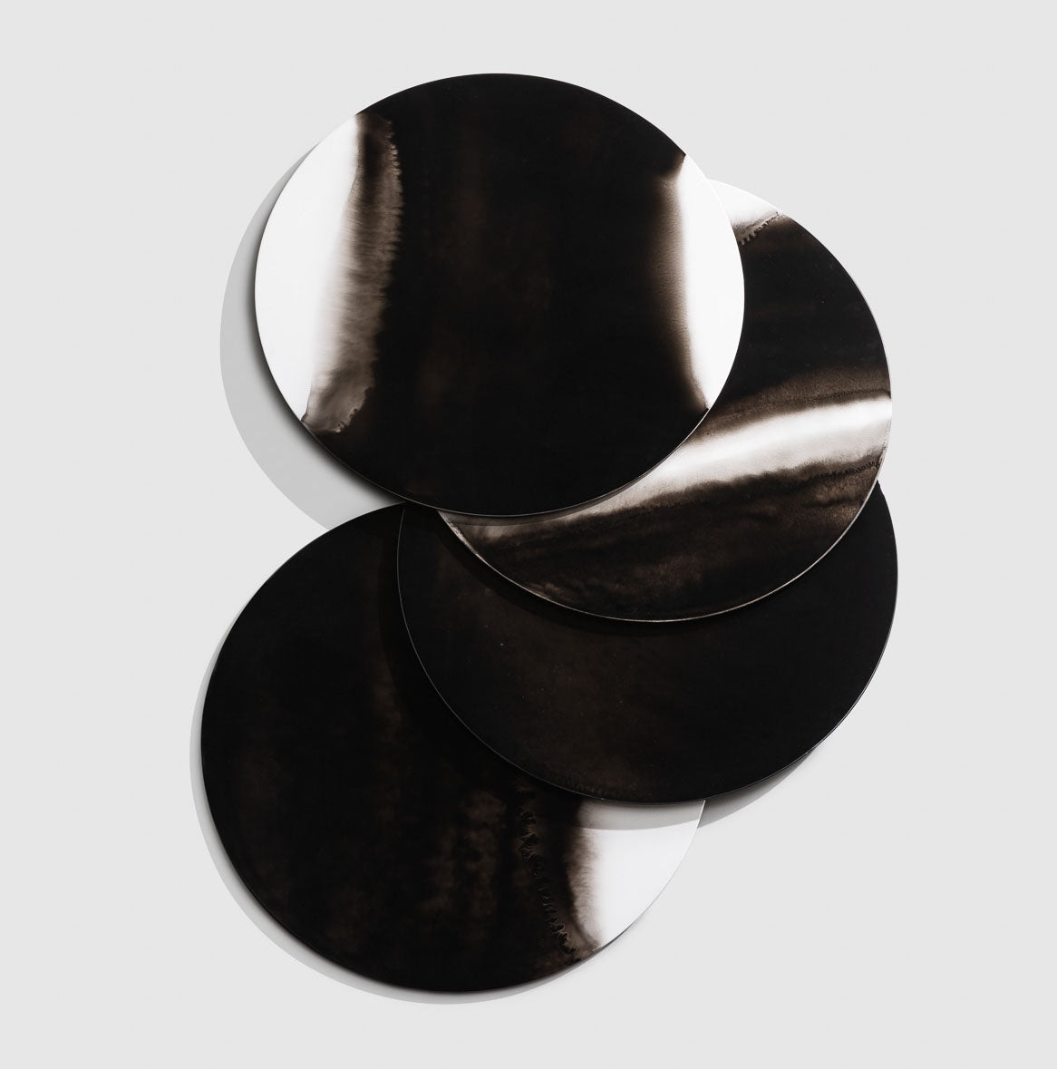 Dalla fluidità del colore prende vita una superficie morbida e vibrante, attraversata da velature leggere che si fondono in sfumature imprevedibili. Realizzato a mano su un supporto in fibra di legno, il sottopiatto tondo nasce da una stesura pittorica libera, in cui i pigmenti scorrono e si sovrappongono fino a creare profondità sottili e trasparenze poetiche. Ogni pezzo è un equilibrio delicato tra gesto e materia, tra presenza e dissolvenza, capace di restituire alla tavola un senso di quiete e di movimento silenzioso. Inchiostro è un invito a lasciarsi guidare dal fluire naturale del colore.