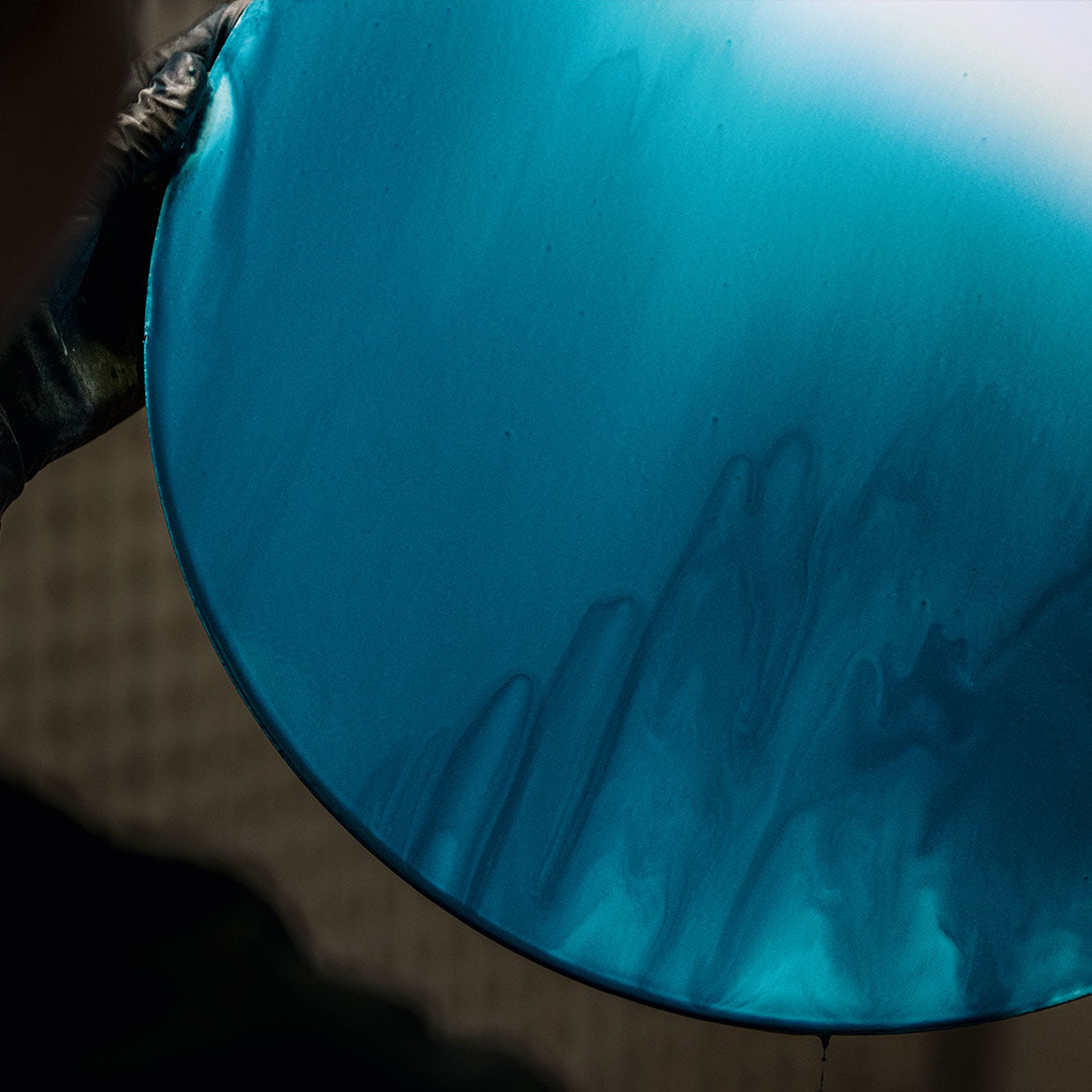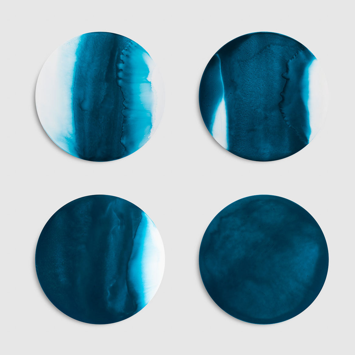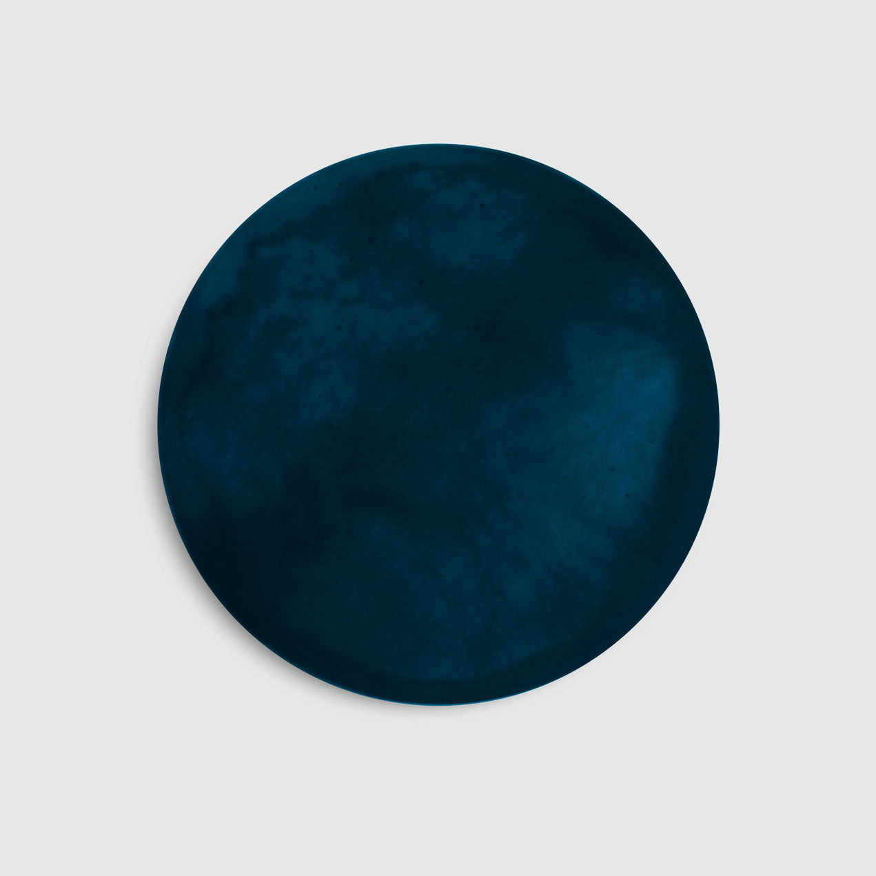 Dalla fluidità del colore prende vita una superficie morbida e vibrante, attraversata da velature leggere che si fondono in sfumature imprevedibili. Realizzato a mano su un supporto in fibra di legno, il sottopiatto tondo nasce da una stesura pittorica libera, in cui i pigmenti scorrono e si sovrappongono fino a creare profondità sottili e trasparenze poetiche. Ogni pezzo è un equilibrio delicato tra gesto e materia, tra presenza e dissolvenza, capace di restituire alla tavola un senso di quiete e di movimento silenzioso. Inchiostro è un invito a lasciarsi guidare dal fluire naturale del colore.